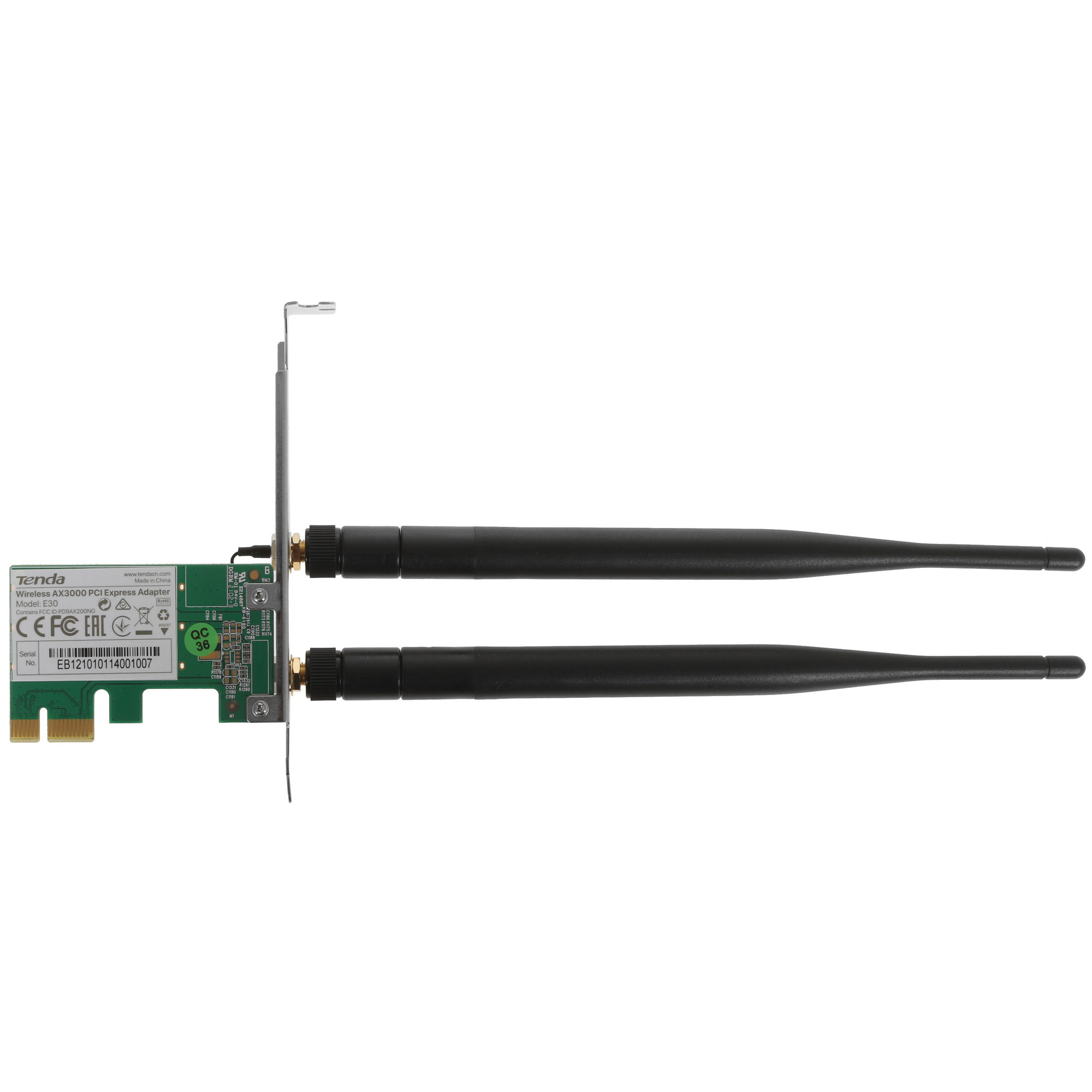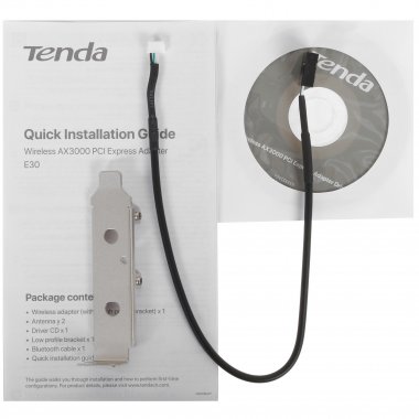Tenda E30 - это адаптер PCIe с Wi-Fi 6. Он поддерживает 1024QAM и полосу пропускания 160 МГц (скорость беспроводного соединения 2,4 ГГц до 574 Мбит / с, скорость беспроводного соединения 5 ГГц до 2402 Мбит / с), чтобы обеспечить беспроблемный опыт онлайн-игр и видео 4K на ПК. E30 имеет две съемные двухдиапазонные антенны 5 дБи, которые обеспечивают стабильный Wi-Fi на большом расстоянии.