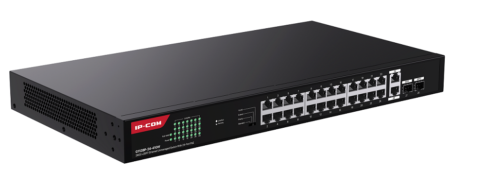 G1128P-24-410W — это гигабитный неуправляемый коммутатор Ethernet PoE, разработанный IP-COM. Коммутатор оснащен 24 гигабитными портами PoE, 2 гигабитными портами uplink RJ45 и 2 портами SFP. Он поддерживает стандарт IEEE 802.3af/at и может автоматически обнаруживать PoE устройства и подавать питание. Максимальная выходная мощность одного порта — 30 Вт, мощность всего коммутатора — 410 Вт. Он поддерживает монтаж в стойку, настройку с помощью одного переключателя, технологию Plug and Play и простое подключение к сети. Это идеальный выбор для предприятий малого и среднего бизнеса, отелей, школ и парков, где требуется видеонаблюдение и беспроводная сеть.