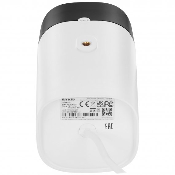 IP-камера Tenda IT7-PCS с проводным подключением оснащена разъемом RJ45 с поддержкой PoE для выхода в интернет и питания устройства через сетевой кабель. Это облегчает процесс монтажа благодаря отсутствию лишних проводов. CMOS-матрица на 4 Мп с поддержкой разрешения 2560x1440 показывает черно-белую или цветную картинку с достаточной для просмотра мелких элементов детализацией.