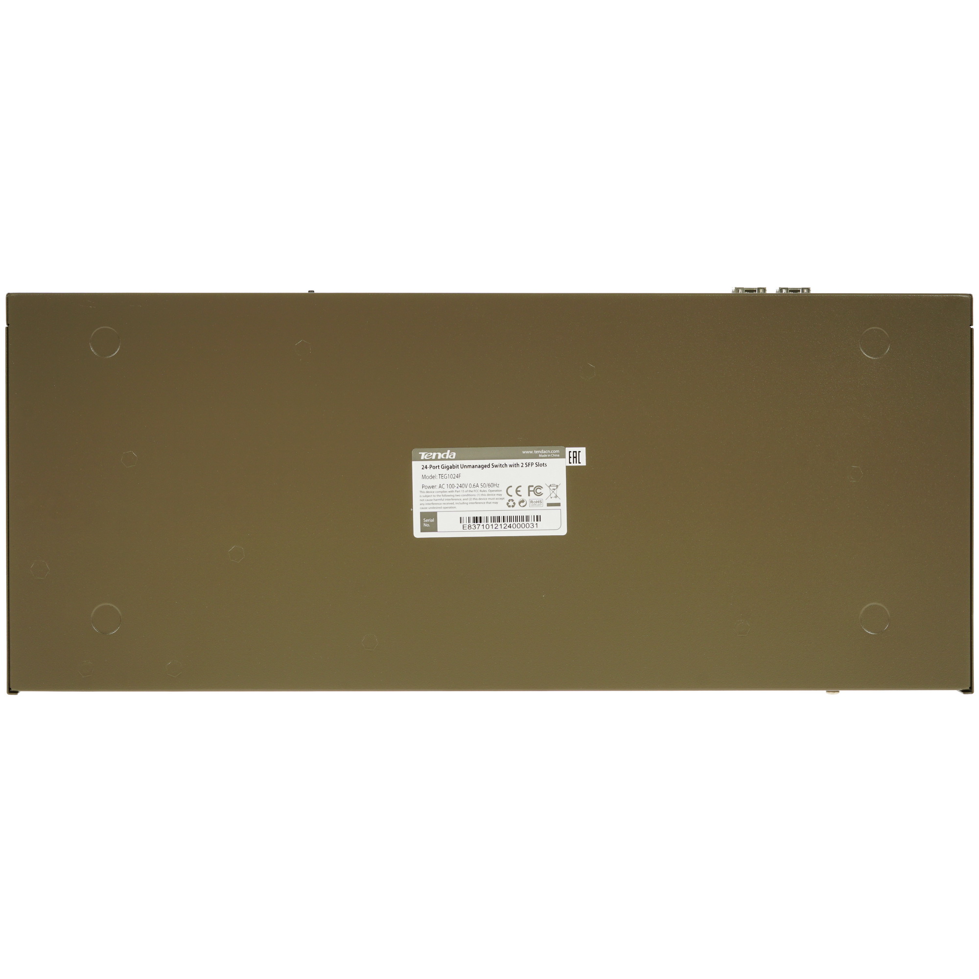 Коммутатор Tenda TEG1024F выполнен в корпусе с надежной защитой от внешних воздействий. Размеры модели позволяют легко разместить ее не только на рабочем столе, но и в специализированных шкафах и стойках для телекоммуникационного оборудования. Для удобства использования устройство снабжено светодиодной индикацией на передней панели. В качестве источника питания используется сеть 220 В. Комплектация коммутатора включает в себя набор креплений.