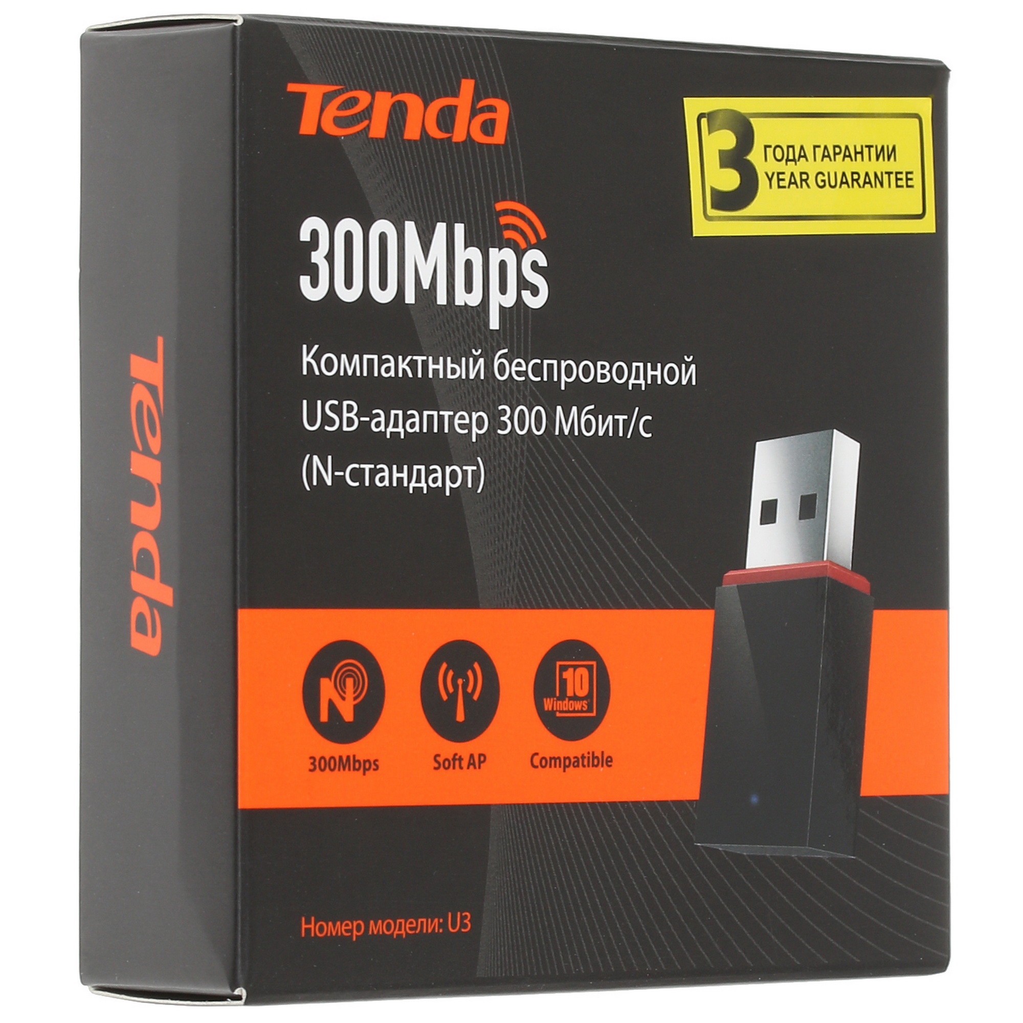 Tenda U3 USB-адаптер, 300 Мбит/с, режим Ad-Hoc, Plug&Play